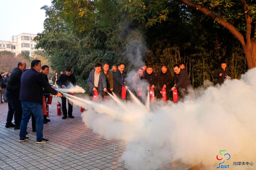 疏散完毕后,安全保卫处工作人员开展消防安全知识公开课,讲解灭火器使用方法,并组织参训人员实操练习。